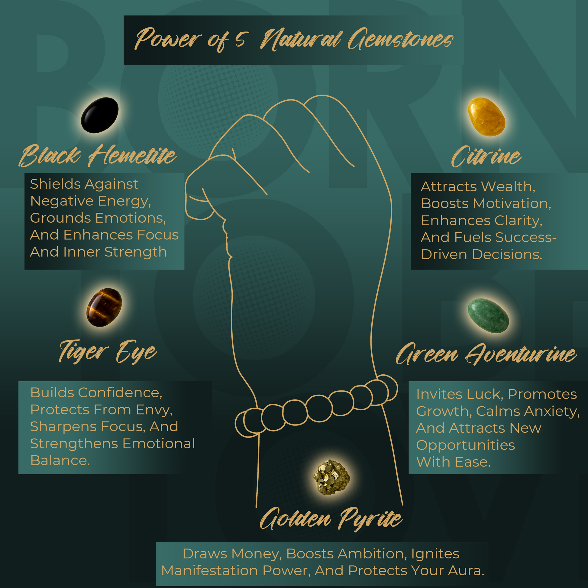- A Powerful Blend of 5 Wealth-Aligning Crystals.