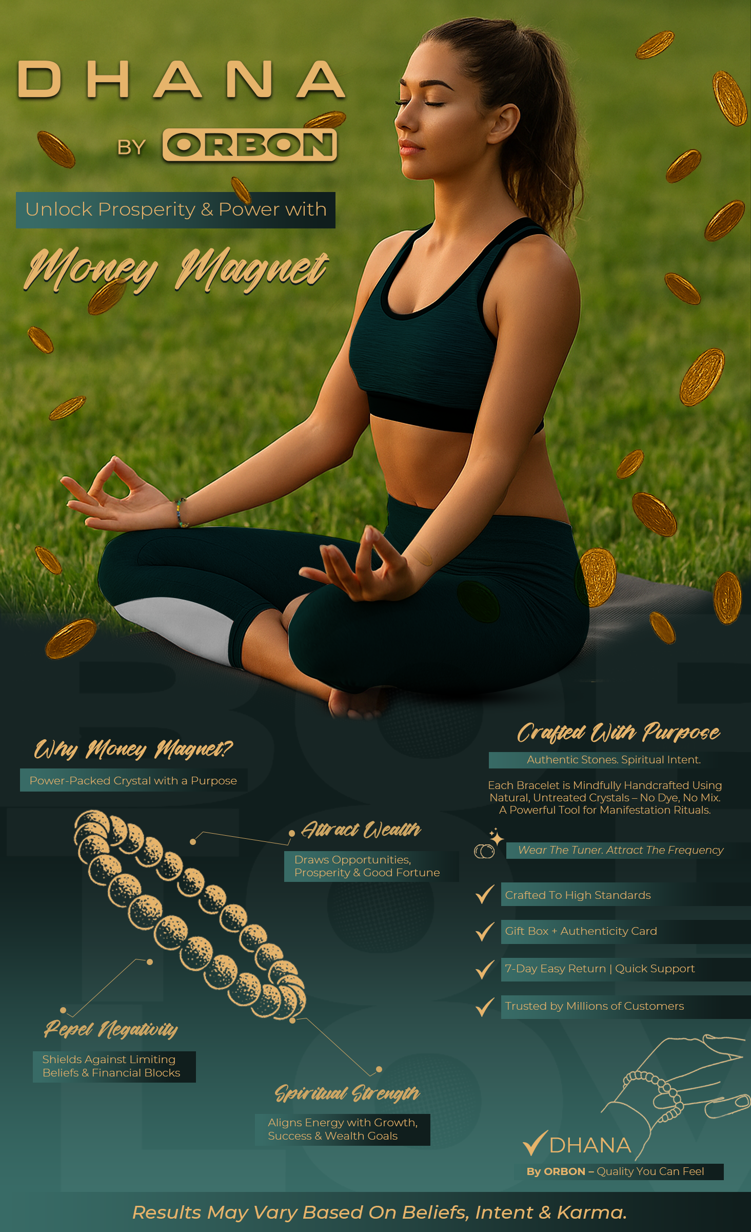 Unlock abundance with the Money Magnet Bracelet from DHANA by ORBON — a certified 7 chakra dhan yog bracelet crafted with Citrine, Green Aventurine, Tiger Eye, Pyrite and Hematite to attract wealth, enhance clarity and balance planetary energies. Rooted in Vedic astrology, this navgrah shanti bracelet is trusted for manifesting prosperity and protection. Hand-assembled in India, it’s a powerful energy accessory for men and women seeking focus, success and financial growth.