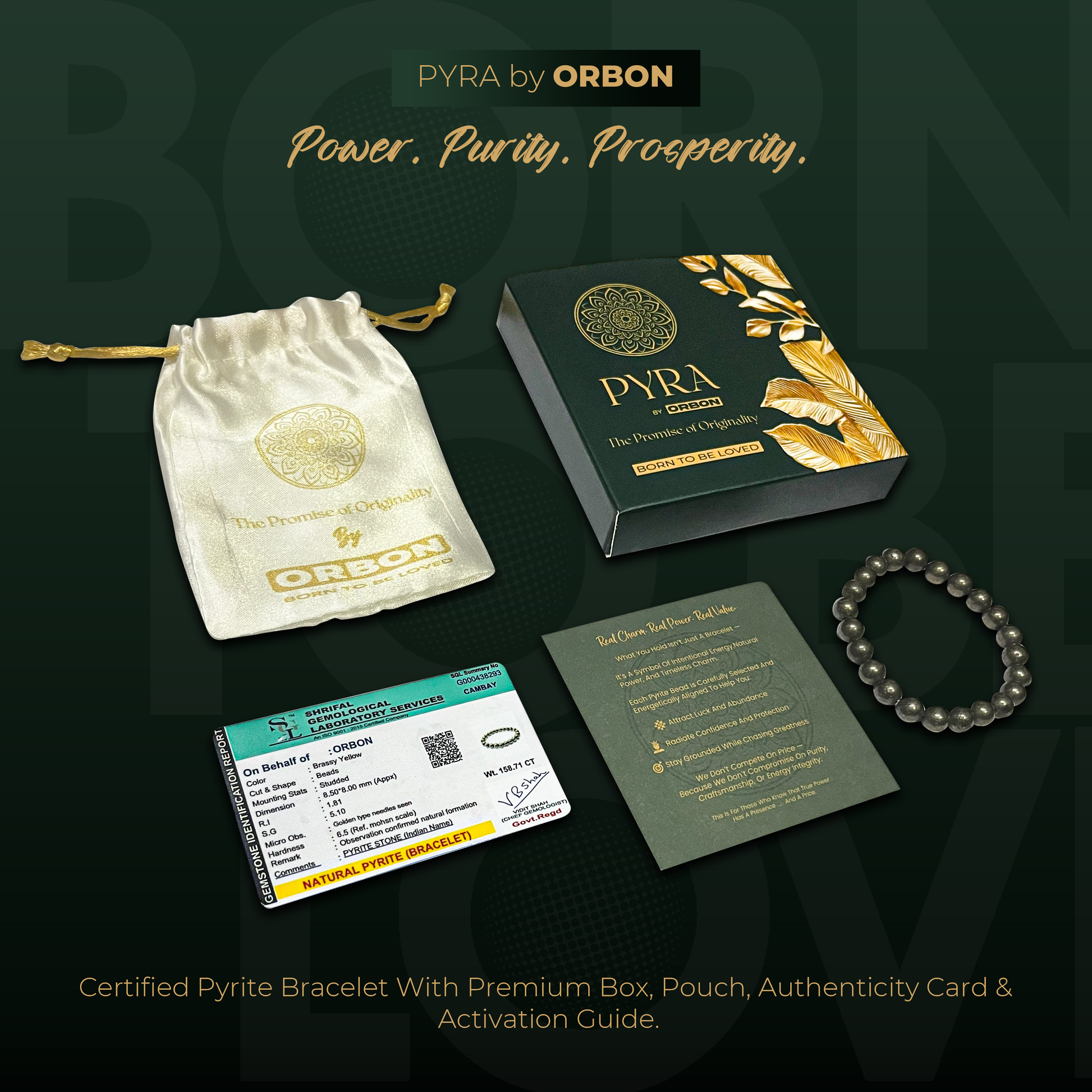 This bracelet uses raw Peruvian pyrite, not synthetic or tumbled versions. It's also supported by an Activation Card and Certificate—making it a holistic energy tool, not just an accessory.