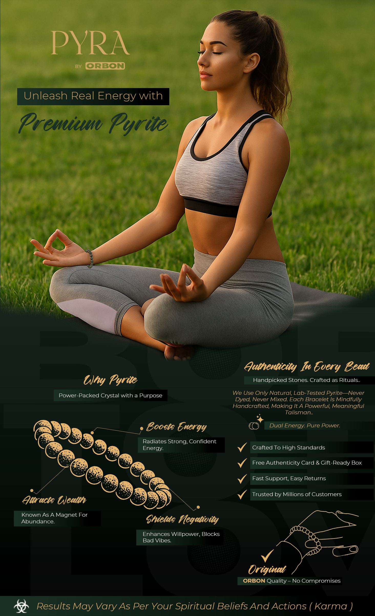 Unleash your inner power with PYRA by ORBON Certified Raw Pyrite Stone — an authentic energy crystal for wealth, confidence, and success. Sourced from sacred Peruvian mines and handcrafted in India, this premium pyrite promotes focus, motivation, and abundance by activating the solar plexus chakra. Comes with an authenticity certificate and activation card. Ideal for daily wear or gifting, this golden “Stone of Fire” supports clarity, confidence, and new opportunities.